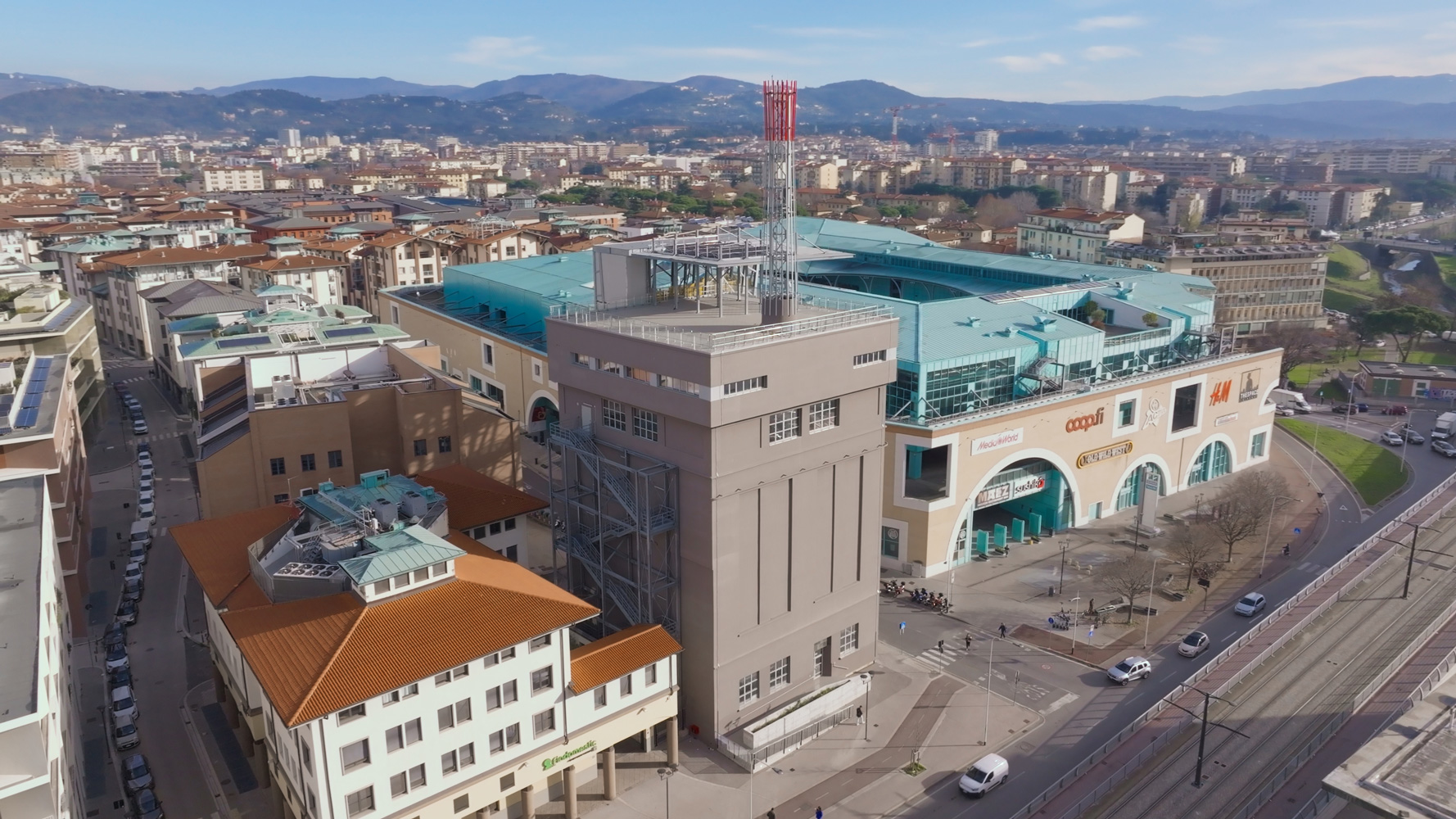 La torre in acciaio di Firenze-Novoli ha sostituito (sul medesimo asse verticale) la preesistente ciminiera in laterizio (giudicata pericolante) conservandone la massima altezza (50 m).
